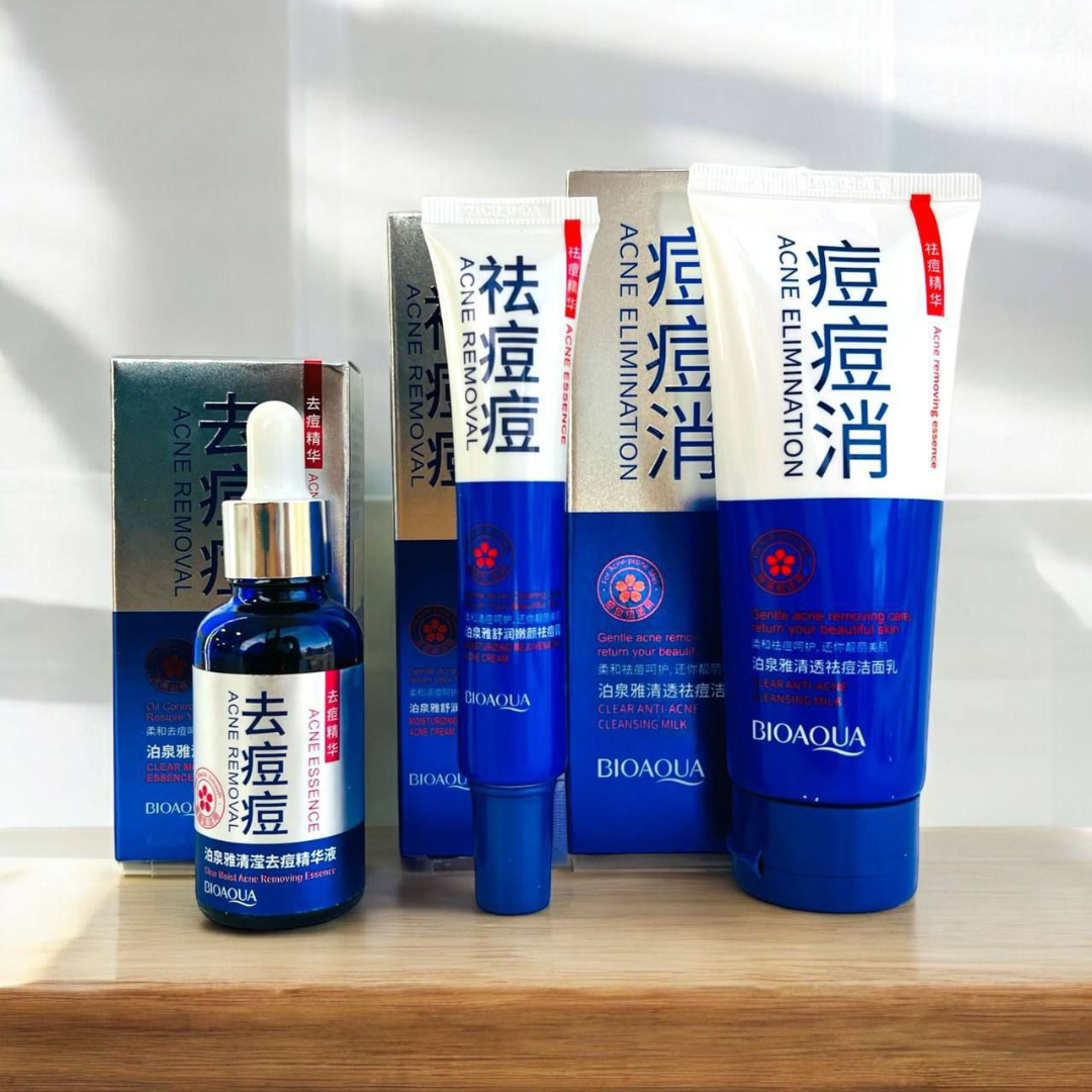 "El Combo Anti Acné de Bioaqua es la solución definitiva para quienes buscan una piel clara y saludable. Este kit de tres productos trabaja en conjunto para atacar el acné desde la raíz. Primero, el Limpiador Facial remueve las impurezas y el exceso de grasa. Luego, el Serum Anti Acné penetra para tratar las imperfecciones y calmar la piel. Finalmente, la Crema de Contorno de Ojos hidrata la delicada piel alrededor de los ojos. Con este combo, no solo combates el acné, sino que nutres y cuidas tu piel, logrando una apariencia fresca y revitalizada